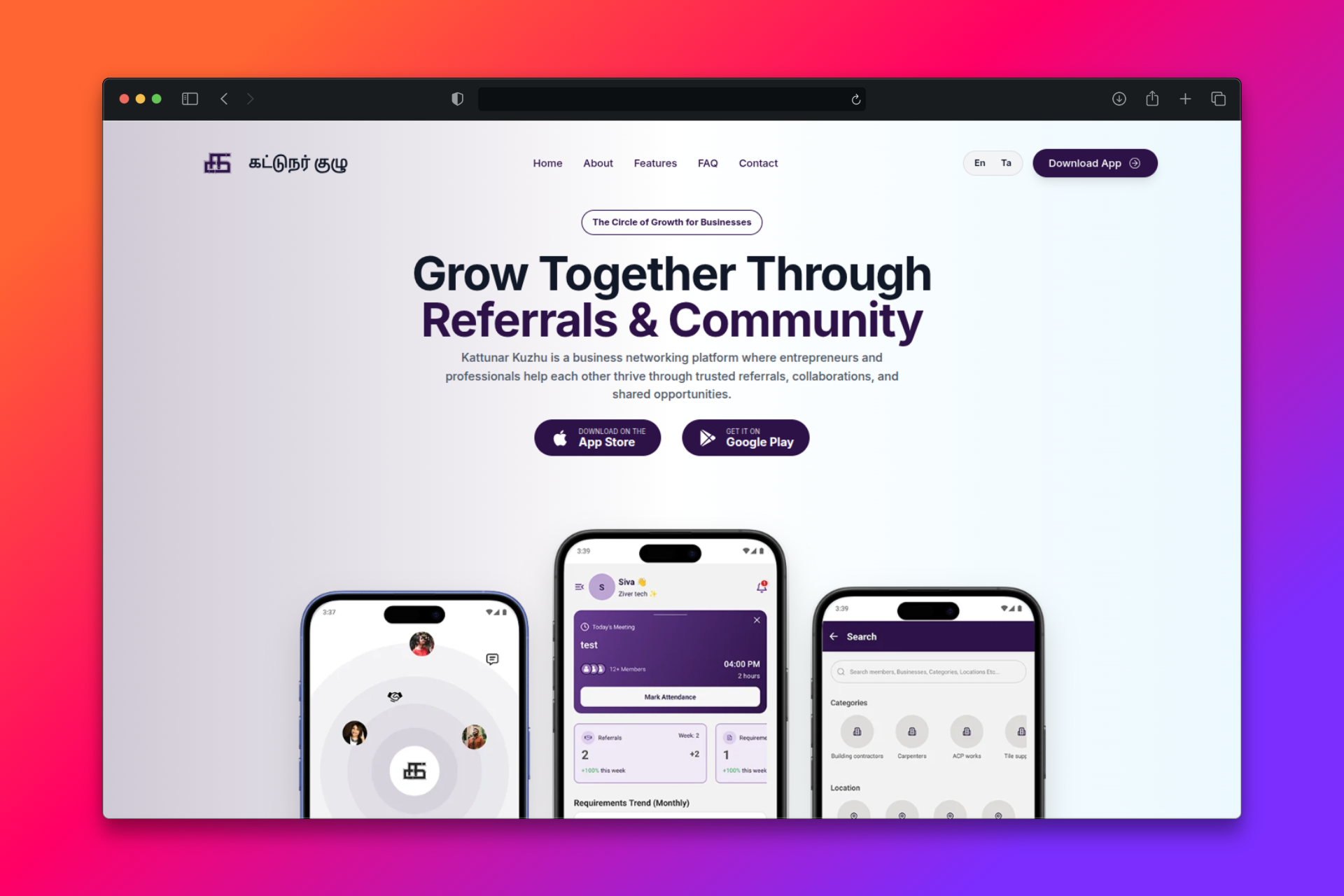 Kattunar Kuzhu is a business networking and referral community platform designed for entrepreneurs, professionals, and business owners to collaborate and grow through trusted connections and referrals.